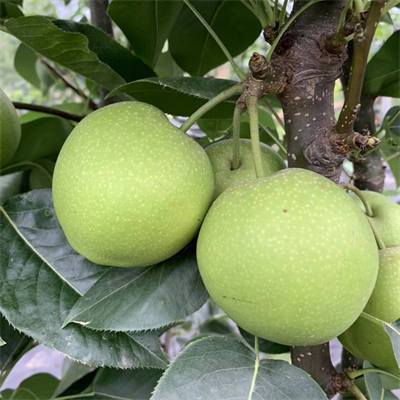 翠玉梨品種是早熟砂梨品種,樹姿較開張,樹勢(shì)強(qiáng)健。翠玉梨品種的果實(shí)為圓形,果形端正,單果重200克左右,果頂稍平,果皮顏色為淺綠色,果面比較光潔,果點(diǎn)極小,萼片脫落,果梗粗短。翠玉梨品種的果肉顏色為白色,肉質(zhì)很細(xì)嫩,汁水較多,口感脆甜,果心極小,可食率約85%左右,可溶性固形物含量為11.5%左右。